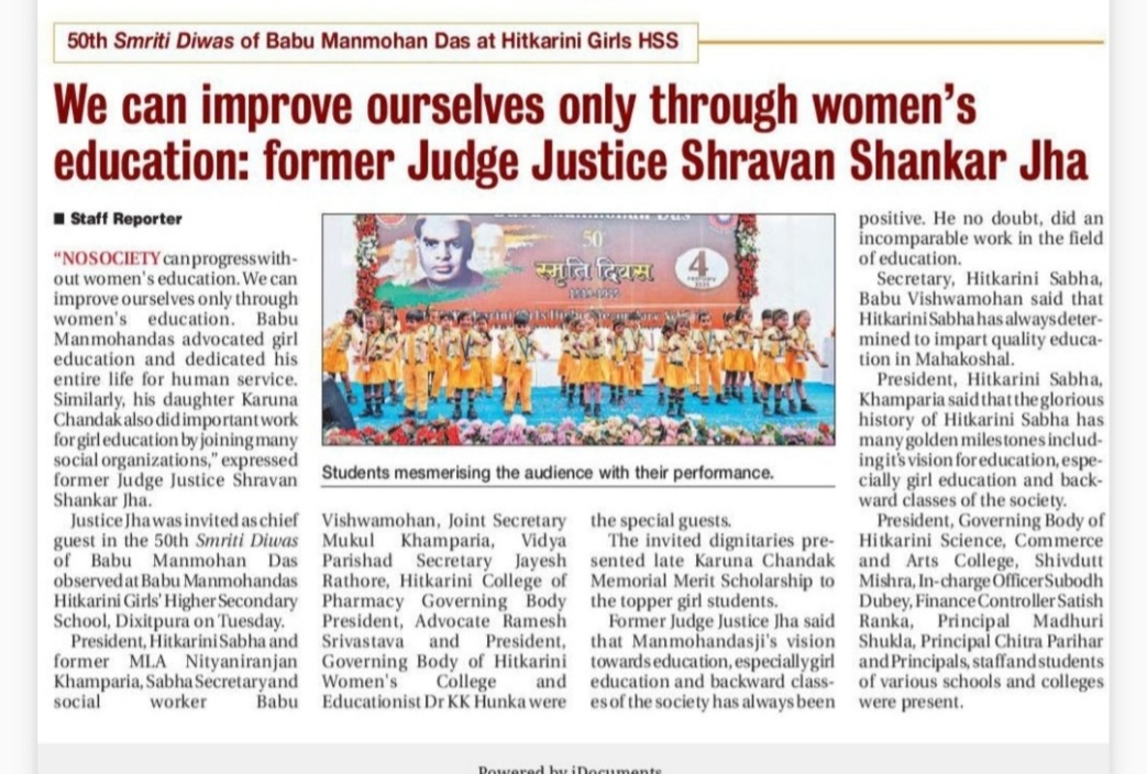 50th Smriti Diwas of Babu Manmohan Das at Hitkarini Girls Higher Secondary School
