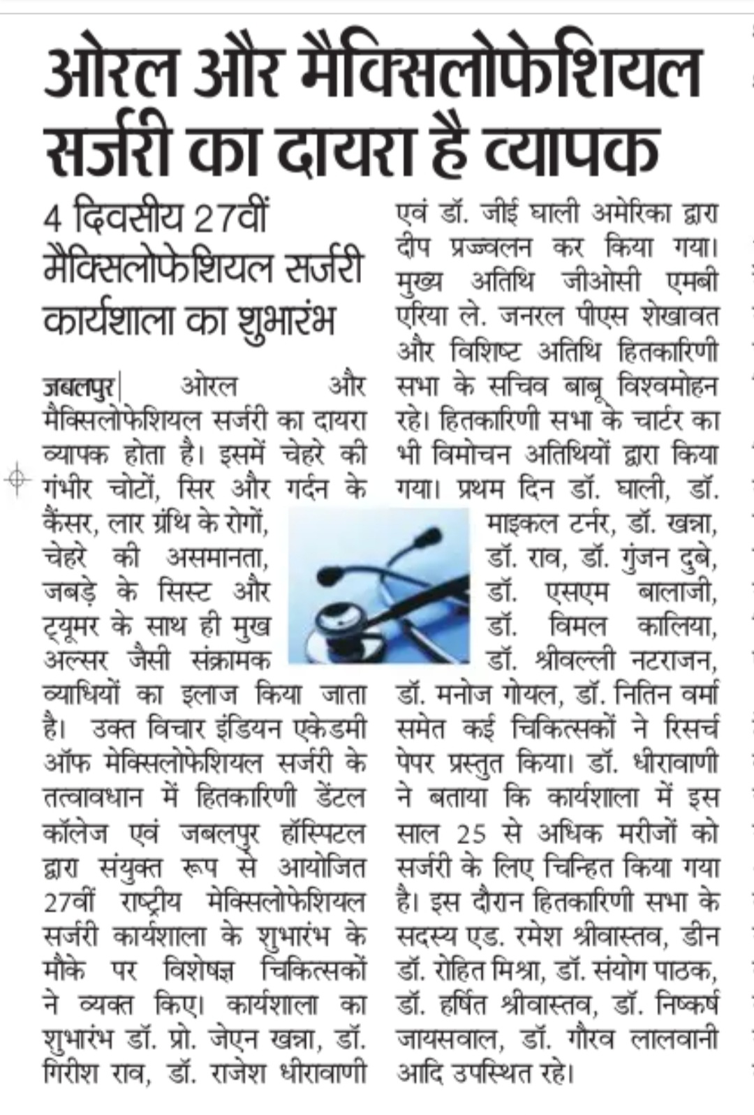 27th National workshop on maxillofacial surgery organized at Hitkarini Dental College