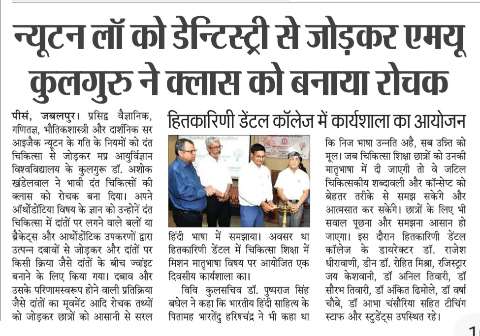 National Workshop Organized at Hitkarini Dental College And Hospital